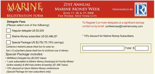 Hello and welcome the 21st Annual Marine Money Week. In partnership with Dahlman Rose Marine Money International is proud to announce this years Marine Money Week 2008 will take place at the Pierre Hotel in New York City.